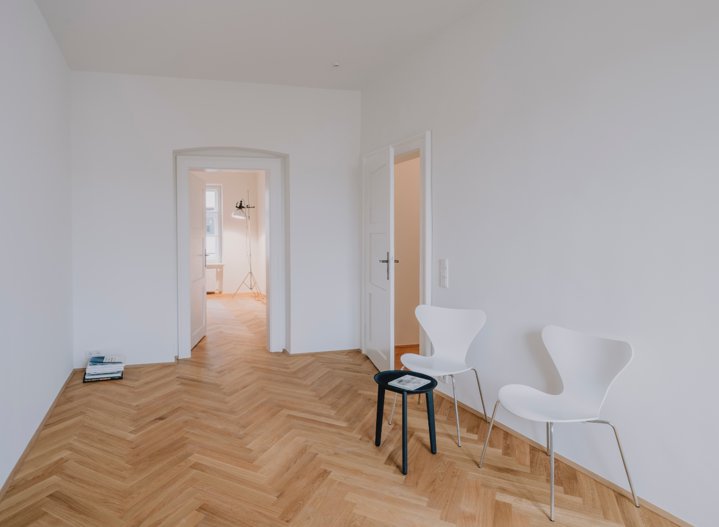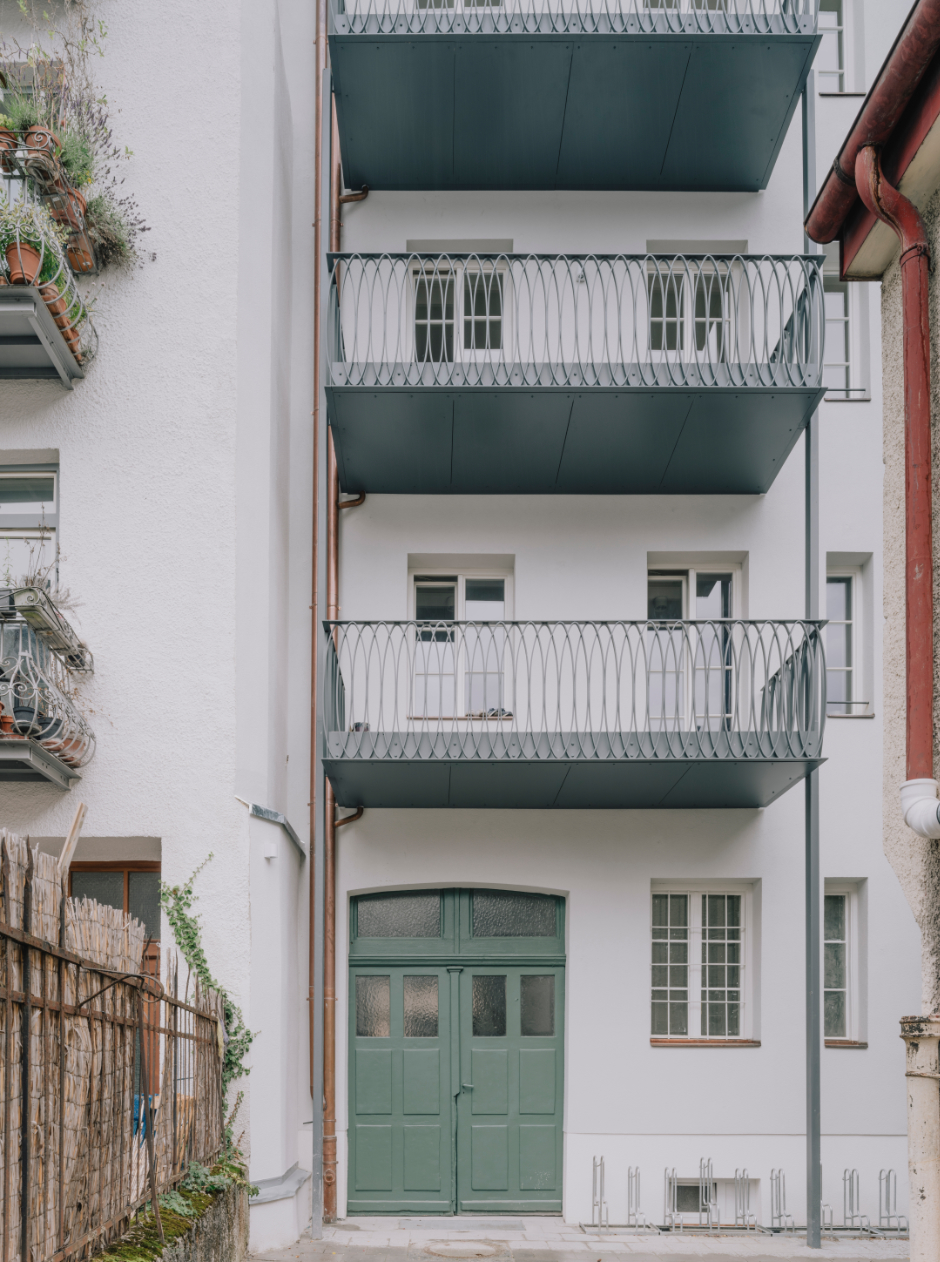Zusätzlich wurden Balkone und ein Aufzug angebaut sowie das Dachgeschoß ausgebaut.